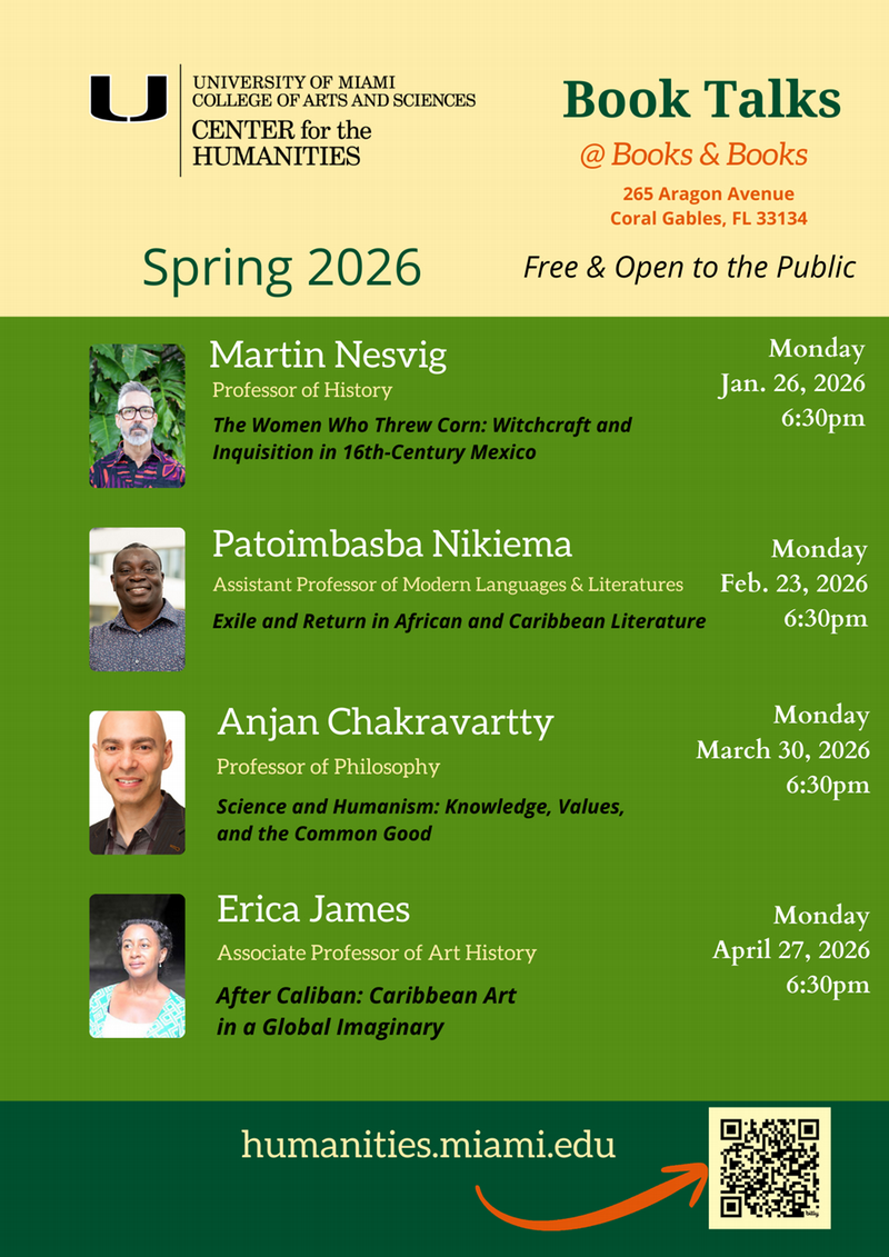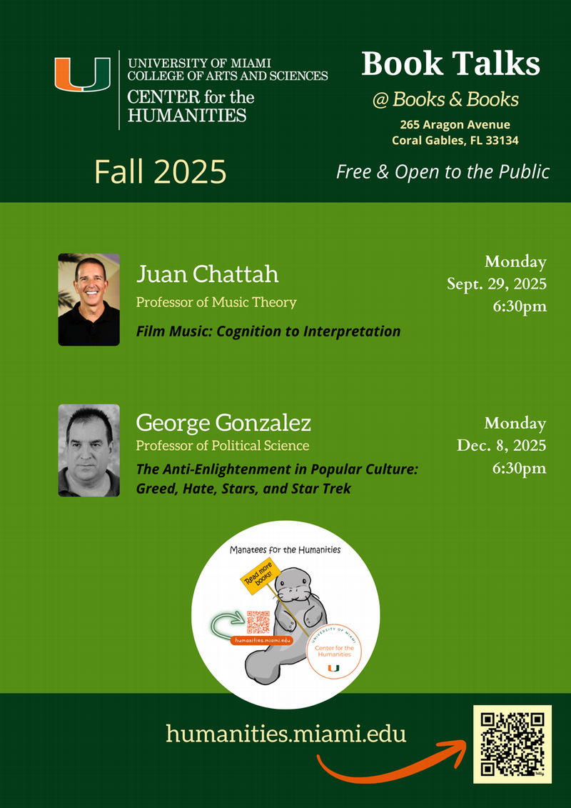 Book Talks provide an opportunity for University of Miami faculty to share their recently published books in the humanities with the larger community. Faculty generally present on their research and take questions from the audience.