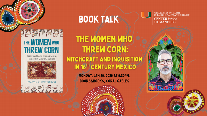 To register and learn more about the program, please click the image above. The Women Who Threw Corn: Witchcraft and Inquisition in 16th-Century Mexico Join us at Books & Books in Coral Gables for a Book Talk with Martin Nesvig! The Women Who Threw Corn tells the stories of women from Spain, North Africa, Senegambia, and Canaries accused of sorcery in sixteenth-century Mexico for adapting native magic and healing practices. These non-native women – the mulata of Seville who cured the evil eye; the Canarian daughter of a Count who ate peyote and mixed her bath water into a man's mustard supply; the wife of a Spanish conquistador who let her hair loose and chanted to a Mesoamerican god while sweeping at midnight; the wealthy Basque woman with a tattoo of a red devil; and many others – routinely adapted Native ritual into hybrid magic and cosmology. Through a radical rethinking of colonial knowledge, Martin Austin Nesvig uncovers a world previously left in the shadows of historical writing, revealing a fascinating and vibrant multi-ethnic community of witches, midwives, and healers. Martin Nesvig is Professor of History at U of Miami. He is currently a fellow of the John Simon Guggenheim Foundation and serves as the Executive Director of the American Society for Ethnohistory. His work focuses on the ways that ordinary people responded to systems of law and Catholic norms in the broader Spanish Empire of the 16th century, focusing in particular on Mexico. He has published six books, of which The Women Who Threw Corn is the most recent. He has also published books on censorship by the Mexican Inquisition (Ideology and Inquisition, Yale 2009) and on the negotiation of political power on the ground in 16th century western Mexico in Michoacán (Promiscuous Power, Texas 2018). Currently he is working on a book trilogy which examines the various ways that Native Mesoamerican culture, language, and ritual influenced non-Native peoples in early post-contact Mexico (1520s-1620s). The project offers a kind of reverse ethnohistory, reversing the analytical gaze normally trained on Native responses to Spanish imperial rule, to ask how the opposite evolved. The Women Who Threw Corn is the first book in this trilogy. Currently he is completing the manuscript for the second book, The Xolotl Rite: Or, How Spanish Men Became Nahuatlized in Sixteenth-Century Mexico.
